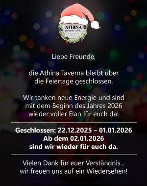 Vielen Dank für Ihre Treue, Ihre Unterstützung und die schönen Begegnungen bei uns in der Athina Taverna.